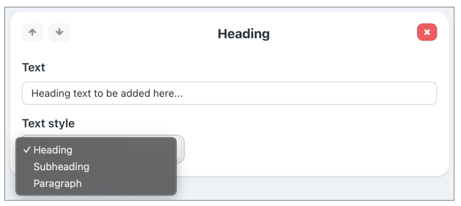 Then, choose whether you'd like it to be in Heading, Subheading, or Paragraph style.