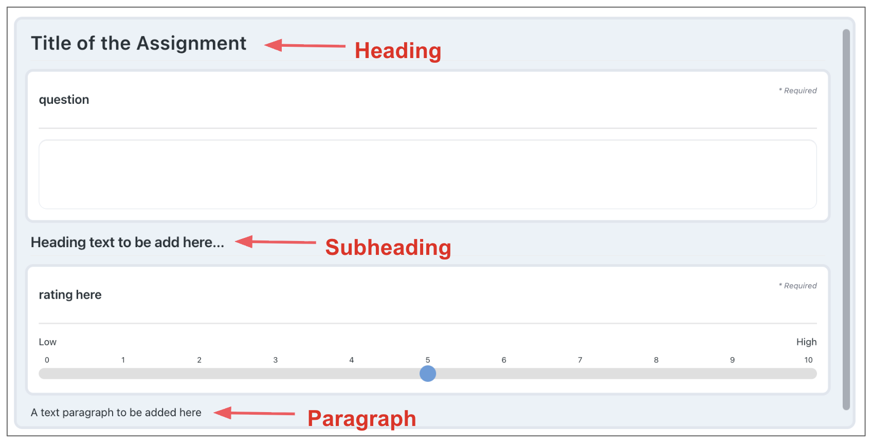 If you'd like to add text before, between, or after your Assignment questions, click the + Add Heading button.